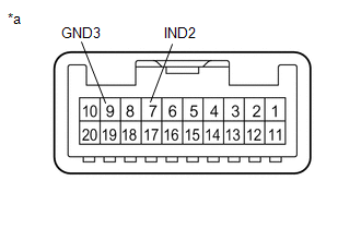 (c) Connect a positive (+) lead from batteries to terminal 7 (IND2) and a negative (-) lead to terminal 9 (GND3) of the map light sub-assembly (manual (SOS) switch) connector.