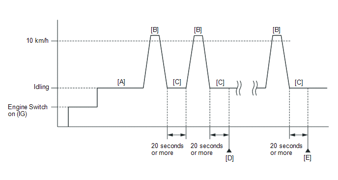 Repeat procedure [B] and [C], and check that the idle speed is within the specified range [D].