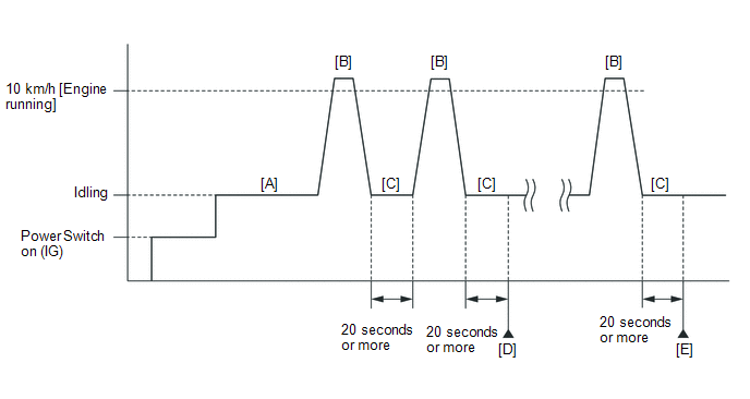 While the engine running, drive the vehicle at a speed of 10 km/h (6 mph) or more [B].