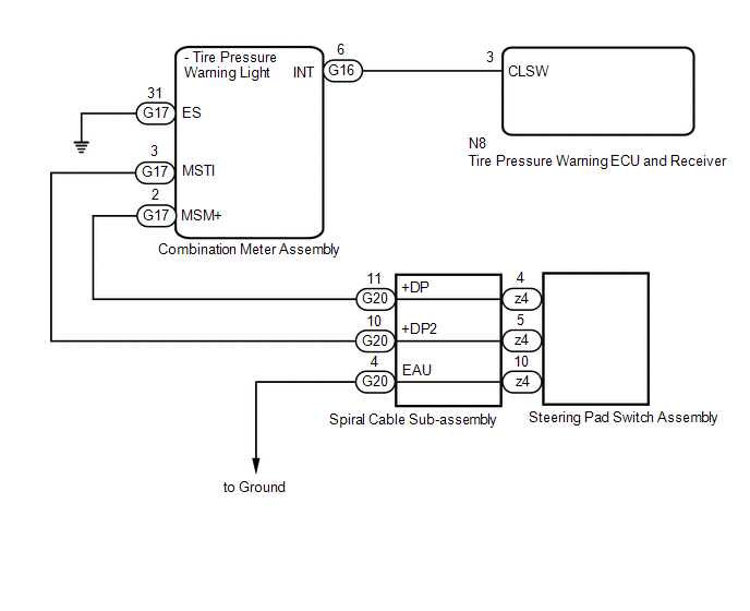 | G20-10 (+DP2) or G17-3 (MSTI) - Body ground | Always | 10 kΩ or higher |