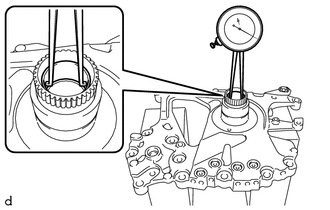 | (b) Using a caliper gauge, measure the inside diameter of the bushing of the stator shaft assembly (for oil pump drive shaft sub-assembly). Standard Inside Diameter: 12.020 to 12.035 mm (0.473 to 0.474 in.) Maximum Inside Diameter: 12.035 mm (0.474 in.) If the inside diameter is more than the maximum, replace the stator shaft assembly. |