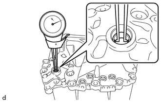 | (a) Using a caliper gauge, measure the inside diameter of the bushing of the front oil pump cover sub-assembly. Standard Inside Diameter: 8.02 to 8.035 mm (0.31575 to 0.31634 in.) Maximum Inside Diameter: 8.035 mm (0.31634 in.) If the inside diameter is more than the maximum, replace the front oil pump cover sub-assembly. |