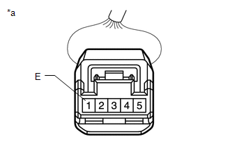 | (4) Measure the resistance according to the value(s) in the table below. Standard Resistance: | Tester Connection | Condition | Specified Condition | | 1 (E) - Body ground | Always | Below 1 Ω | If the result is not as specified, repair or replace the shift lock control ECU wire harness. | | | *a | Front view of wire harness connector (to Shift Lock Control ECU) | | |