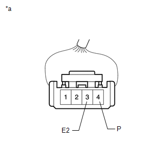 | (2) Measure the resistance according to the value(s) in the table below. Standard Resistance: | Tester Connection | Condition | Specified Condition | | 4 (P) - 3 (E2) | Shift lever in P | 10 kΩ or higher | | Shift lever not in P | Below 1 Ω | If the result is not as specified, replace the shift lock control unit assembly. | | | *a | Front view of wire harness connector (to Shift Lock Solenoid) | | |