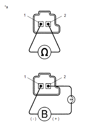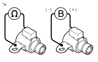 (b) Connect a positive (+) lead from the battery to the terminal of the solenoid (SL) valve connector and a negative (-) lead to the solenoid (SL) valve body, and check that the solenoid (SL) valve moves and makes an operating sound.