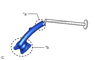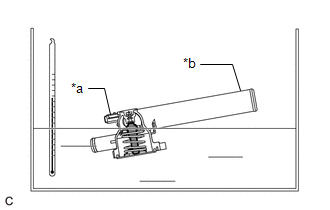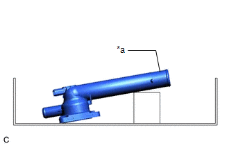 | (4) Leave the water inlet with thermostat sub-assembly at ambient temperature for 5 minutes so that the valve closes. NOTICE: Make sure that the end of the inlet pipe of the water inlet with thermostat sub-assembly is not facing downward. |