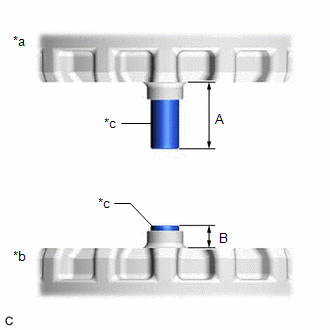 | (1) Using vernier calipers, measure length (A) and (B) with the shaft of the camshaft timing oil control solenoid assembly set in the respective positions shown in the illustration. NOTICE: Do not apply battery voltage to the terminals of the camshaft timing oil control solenoid assembly. HINT: If the shaft does not extend under its own weight, extend the shaft with your fingers. |
