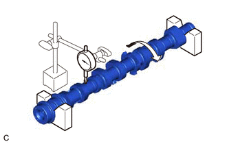 | (2) Using a dial indicator, measure the runout at the center journal. Maximum Runout: 0.04 mm (0.00157 in.) HINT: