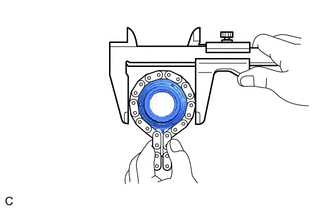| (b) Using a vernier caliper, measure the diameter of the idle sprocket assembly with the chain sub-assembly. Maximum Sprocket Diameter (with Chain Sub-assembly): 65.2 mm (2.57 in.) HINT: