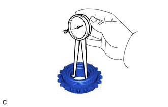| (b) Using a vernier caliper, measure the diameter of the crankshaft timing sprocket with the chain sub-assembly. Maximum Sprocket Diameter (with Chain Sub-assembly): 62.2 mm (2.45 in.) HINT: