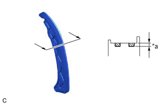 | (a) Measure the wear depth of the chain tensioner slipper. Maximum Depth: 1.0 mm (0.0394 in.) HINT: If the depth is more than the maximum, replace the chain tensioner slipper. |