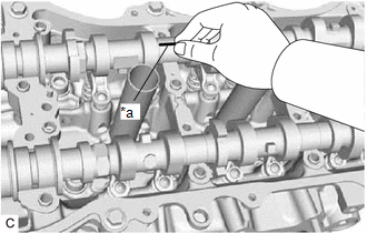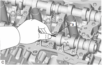 | (a) Turn the roller by hand to check that it turns smoothly. HINT: If the roller does not turn smoothly, replace the No. 1 valve rocker arm sub-assembly. |