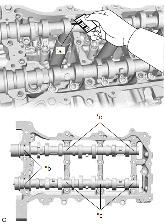 (1) Clean the camshaft bearing caps, camshaft housing sub-assembly LH and camshaft journals.