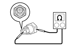 | (d) Measure the resistance according to the value(s) in the table below. Standard Resistance: | Tester Connection | Condition | Specified Condition | | 1 - Switch body | Idling | 10 kΩ or higher | | Engine stopped | Below 1 Ω | If the result is not as specified, replace the engine oil pressure switch assembly. | |