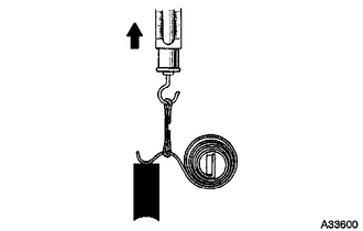 | (1) Take a pull scale reading the instant the brush spring separates from the brush. Standard Spring Load: 22.3 to 27.3 N (2.27 to 2.78 kgf, 5.01 to 6.14 lbf) Minimum Spring Load: 13.8 N (1.41 kgf, 3.1 lbf) If the spring load is less than the minimum, replace the starter brush holder assembly. |