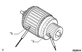 | (c) Check the commutator for a short circuit. (1) Measure the resistance according to the value(s) in the table below. Standard Resistance: