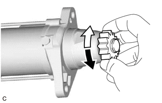 (4) Check that the starter assembly operates smoothly and steadily while the clutch pinion gear is moving outward.