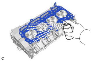 | (b) Using a dye penetrant, check the intake ports, exhaust ports and cylinder head sub-assembly surface for cracks. HINT: If cracks are found, replace the cylinder head sub-assembly. |