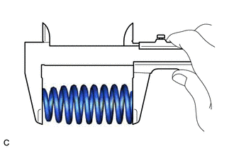| (1) Using a vernier caliper, measure the free length of the compression spring. Standard Free Length: 55.11 mm (2.17 in.) HINT: If the free length is not as specified, replace the compression spring. |