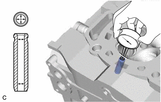 | (a) Using a caliper gauge, measure the inside diameter of the valve guide bush. Standard Valve Guide Bush Inside Diameter: 5.51 to 5.53 mm (0.217 to 0.218 in.) |