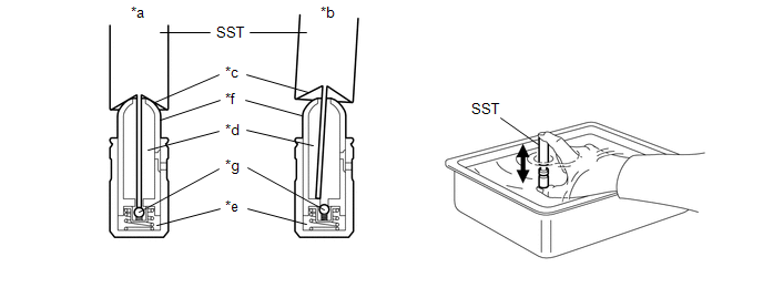 (c) Squeeze SST and the valve lash adjuster assembly together to move the plunger up and down 5 to 6 times.