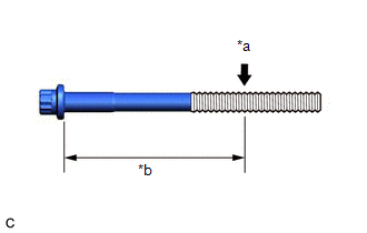 | (1) Using a vernier caliper, measure the diameter of the threads at the measurement point. Standard Diameter: 11.7 to 11.9 mm (0.461 to 0.469 in.) Minimum Diameter: 11.6 mm (0.457 in.) Measurement Point (Distance from the Seat): 115 mm (4.53 in.) HINT: