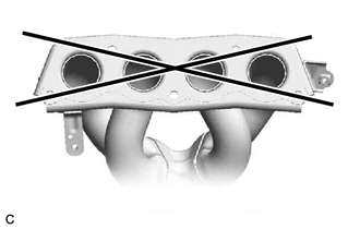 | (a) Using a precision straightedge and feeler gauge, check the surface that contacts the cylinder head sub-assembly for warpage. Maximum Warpage: 0.7 mm (0.0276 in.) HINT: If the warpage is more than the maximum, replace the exhaust manifold (TWC: Front Catalyst). |