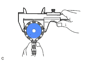 (b) Using a vernier caliper, measure the diameter of the crankshaft timing sprocket and chain sub-assembly.