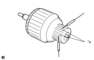 | (c) Check the commutator for a short circuit. (1) Measure the resistance according to the value(s) in the table below. Standard Resistance: