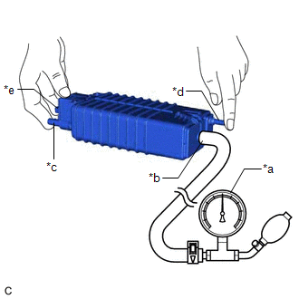 | (a) Visually check the canister (charcoal canister assembly). (1) Visually check the canister (charcoal canister assembly) for cracks or damage. If cracks or damage are found, replace the canister (charcoal canister assembly). |