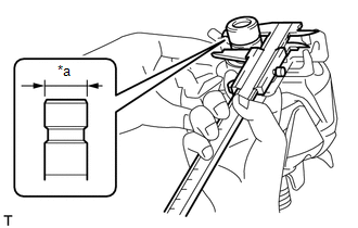 | (a) Using a vernier caliper, measure the length of the exposed brushes. Standard Exposed Brush Length: 9.5 to 11.5 mm (0.374 to 0.453 in.) Minimum Exposed Brush Length: 4.5 mm (0.177 in.) If the brush length is less than the minimum, replace the generator brush holder assembly. |