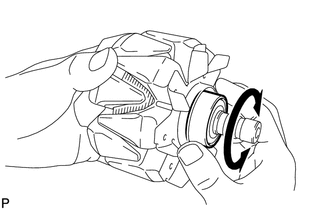 | (c) Check that the generator rotor bearing is not rough or worn and that it rotates smoothly. If the generator rotor bearing is rough or worn, or does not rotate smoothly, replace the generator rotor assembly. |
