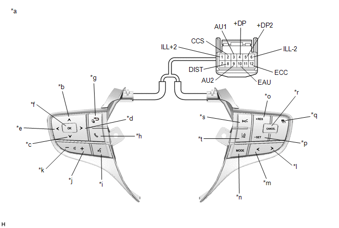 | *a | Component without harness connected (Steering Pad Switch Assembly) | *b | Up |