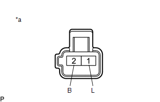 | (a) Check the resistance. (1) Measure the resistance according to the value(s) in the table below. Standard Resistance: | Tester Connection | Switch Condition | Specified Condition | | 2 (B) - 1 (L) | Switch on | Below 1 Ω | | 2 (B) - 1 (L) | Switch off | 10 kΩ or higher | If the result is not as specified, replace the luggage door opening cancel switch assembly. | | | *a | Component without harness connected (Luggage Door Opening Cancel Switch Assembly) | | |
