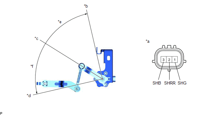 | 1 (SHG) - 2 (SHRR) | Link moves upward from standard position to bound side (Height low) | From 18.5° to bound side link stop position | 0.5 V |