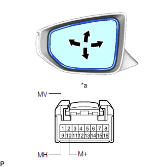 (2) Apply auxiliary battery voltage and check the operation of the mirror surface.