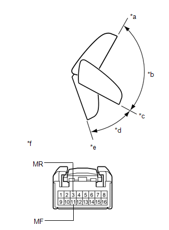 | Auxiliary battery positive (+) → Terminal 11 (MF) Auxiliary battery negative (-) → Terminal 3 (MR) | Driving position (C) | Does not move |