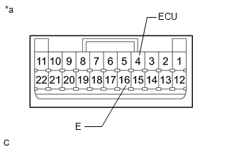 | (b) Measure the resistance according to the value(s) in the table below. Standard Resistance: | Tester Connection | Switch Condition | Specified Condition | | 4 (ECU) - 16 (E) | Panoramic view monitor switch pushed | 190 to 210 Ω | | Panoramic view monitor switch not pushed | 1 MΩ or higher | If the result is not as specified, replace the panoramic view monitor switch (No. 2 combination switch assembly). | | | *a | Component without harness connected (Panoramic View Monitor Switch (No. 2 Combination Switch Assembly)) | | |