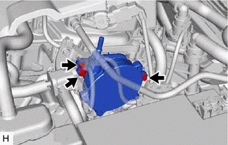 | (c) Using an 8 mm socket wrench, install the vacuum pump assembly with the 3 bolts. Torque: 10 N·m {102 kgf·cm, 7 ft·lbf} NOTICE: After installation, check that there are no gaps between the matching surfaces and that the vacuum pump assembly is not installed at an angle. | |