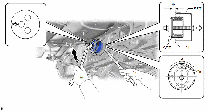 Make sure that SST contacts the entire circumference of the rear No. 1 differential mount cushion.