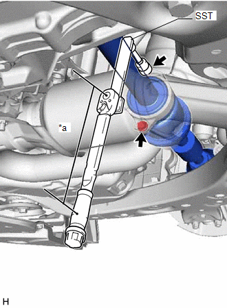| (d) Install the front drive shaft assembly RH with the 2 bolts. SST: 09961-00950 Torque: Specified tightening torque : 50.5 N·m {515 kgf·cm, 37 ft·lbf} HINT: