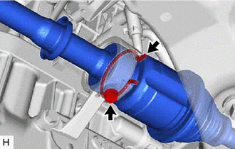 | (g) Align the matchmarks and install the front drive shaft assembly RH to the front axle hub sub-assembly. NOTICE: