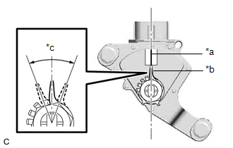 | (h) Align the indicator with the neutral basic line. NOTICE: The indicator of the lock plate has a certain amount of play. Align the center point of the range of play with the neutral basic line. |