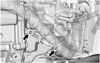 | (b) Clean and degrease the 2 bolt holes of the hybrid vehicle transaxle assembly. |