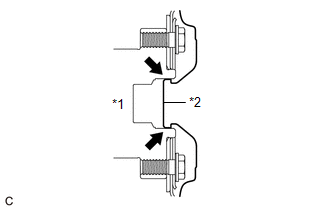 | (a) Install the propeller shaft heat insulator to the rear No. 2 engine mounting bracket and transfer assembly with the 3 bolts. Torque: 18 N·m {184 kgf·cm, 13 ft·lbf} HINT: Tightening order: Temporarily tighten bolt (A) → Temporarily tighten bolt (B) → Fully tighten bolt (C) → Fully tighten bolt (B) → Fully tighten bolt (A) |