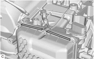 Completely remove any oil or grease from the contact surfaces of the transmission case side cover.