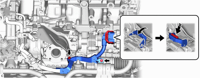 (g) Engage the wire harness clamp and connect the vacuum switching valve (for active control engine mount system) connector.