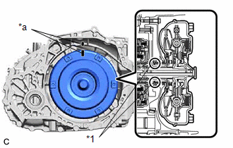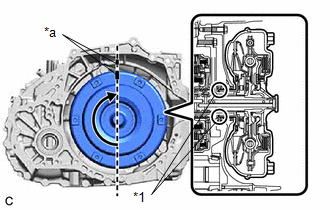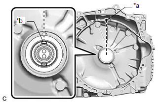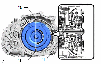 | (a) Set the key at the top of the front oil pump drive gear and put a matchmark on the transaxle housing. |