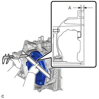 | (g) Using a vernier caliper and straightedge, measure the dimension (A) shown in the illustration and check the dimension (A). Standard: 14.3 mm (0.563 in.) or more NOTICE: