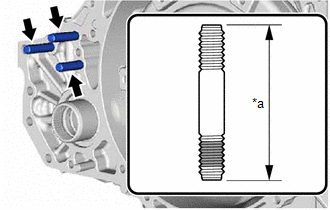 (b) Using 2 nuts, install a new transfer and transaxle setting stud bolt to the transaxle housing position shown in the illustration.